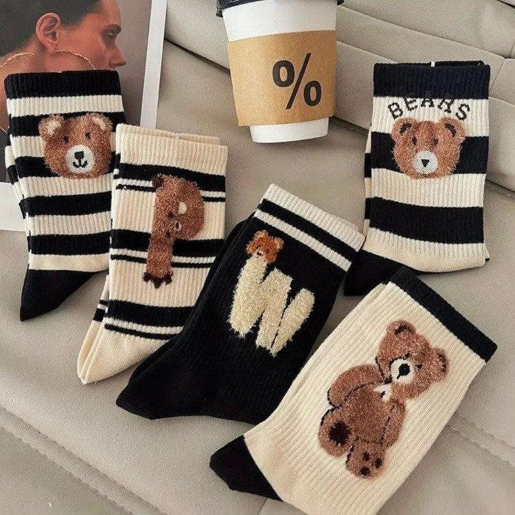 جورابهای طرح خرس، با طراحی جذاب و شیک، از ترکیب رنگهای سیاه و سفید راهراه همراه با طرح خرس برجسته ساخته شدهاند. این جورابها علاوه بر زیبایی، بافتی گرم و نرم دارند که برای روزهای سرد سال گزینهای ایدهآل است.